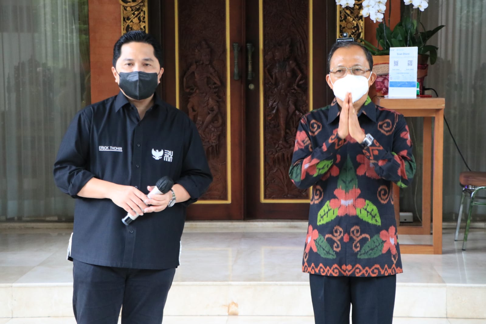 Kedatangan Menteri BUMN Erick Thohir berkaitan dengan rencana Bali akan mulai membuka pintu pariwisata untuk wisatawan mancanegara yang sudah dibahas beberapa Menko Marves, Menteri Pariwisata, Menteri Perhubungan dan Menteri Kesehatan.