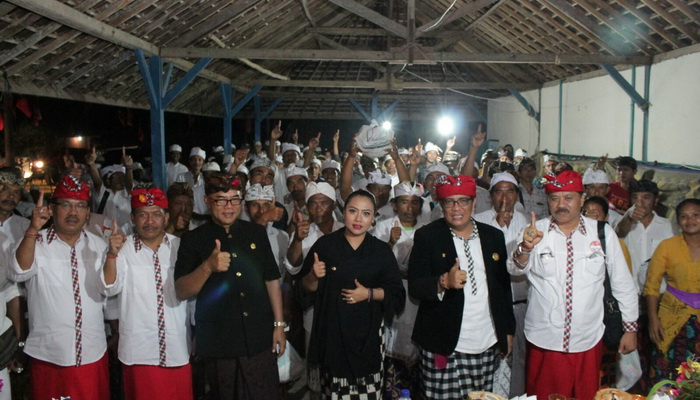 Usai melakukan persembahayangan bersama di Pura Puseh Lumbung yang dihadiri kedua jago yang diusung PDI Perjuangan, dilanjutkan penyampaikan sikap kebulatan tekad masyarakat.