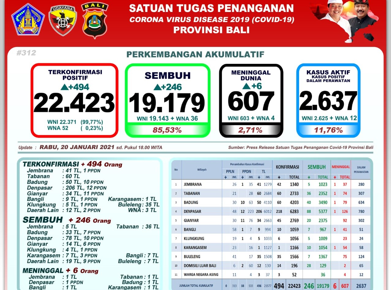 Denpasar – Provinsi Bali mencatat pertambahan kasus terkonfirmasi