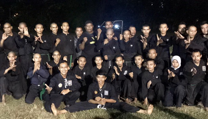 | Warga Tingkat I dan Pengurus PSHT Cabang Denpasar Miftachur Rohman bersama para pelatih dan pengurus lainnya |