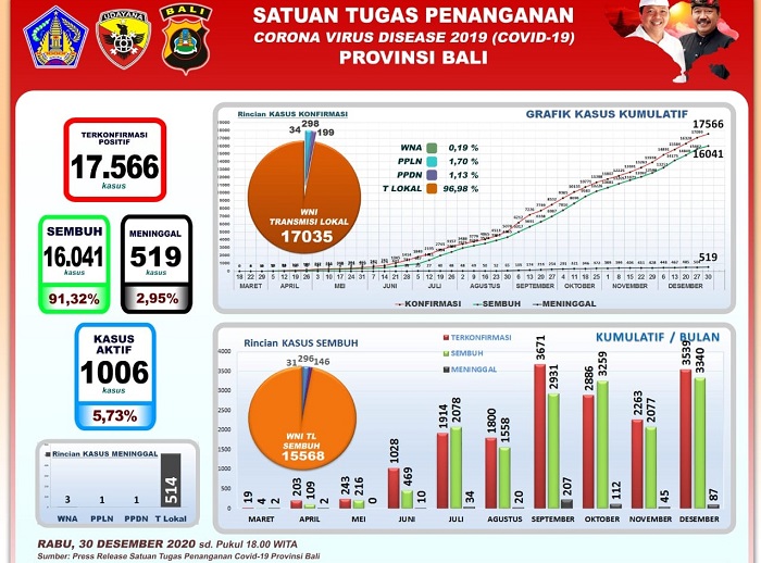 Denpasar – Satgas Penanganan Covid-19 Provinsi Bali mencatat penambahan