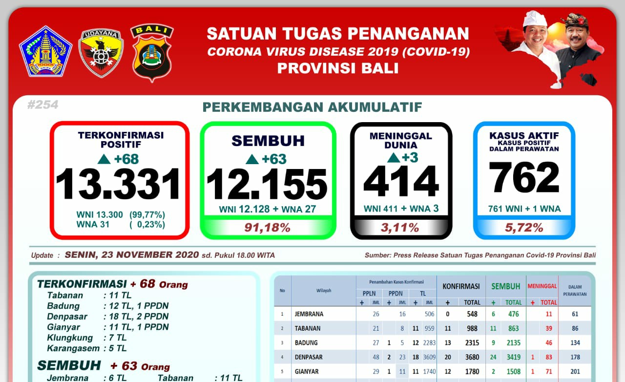 Denpasar – Provinsi Bali per hari ini mencatat pertambahan kasus