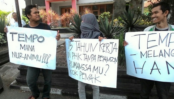 “Tempo telah memberlakukan sistem kerja yang tidak manusiawi, dengan tidak memberikan jaminan kerja terhadap korespondennya,” kata Anang yang juga koresponden Tempo di Yogyakarta dan Jateng.