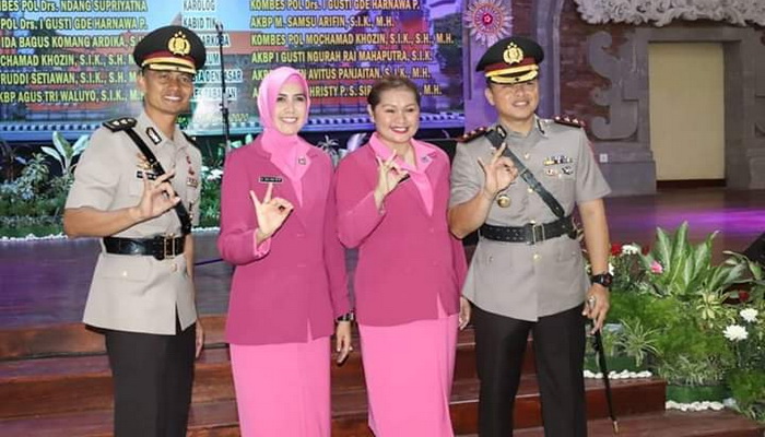 | Kapolres Tabanan bersama isteri. kapolres Tabanan yang lama AKBP Agus Tri Waluyo (kiri) dan Kapolres Tabanan yang baru AKBP Mariochristy Panca Sakti Siregar (kanan) |
