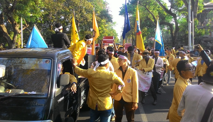 Ratusan mahasiswa berasal dari BEM Undiknas, Universitas Udayana (Unud), Universitas Diana Pura, Undiksa Singaraja, universitas Mahendradata, dan UNHI bermaksud berorasi di depan wakil rakyat namun banyak anggota dewan yang reses sehingga kantor kosong, Rabu (28/10/2015).