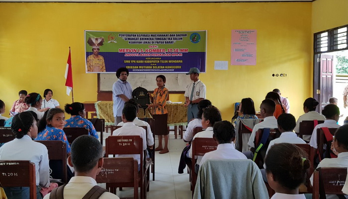 TELUK WODAMA– Anggota MPR RI, Mervin Sadipun Komber mendatangi SMU YPK Aitumieri Kaibi di Teluk Wondama Provinsi Papua Barat, Senin 6 Agustus 2018.