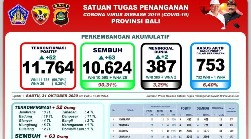 Dia menjelaskan, pandemi Covid-19 di Provinsi Bali mencatat pertambahan kasus