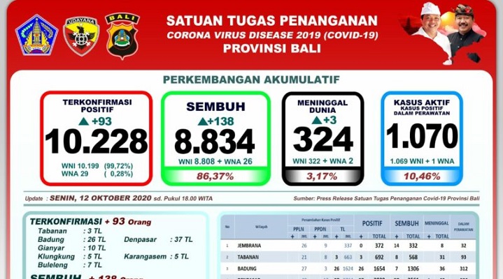 (Covid-19) di Provinsi Bali, Senin (12/10/2020).