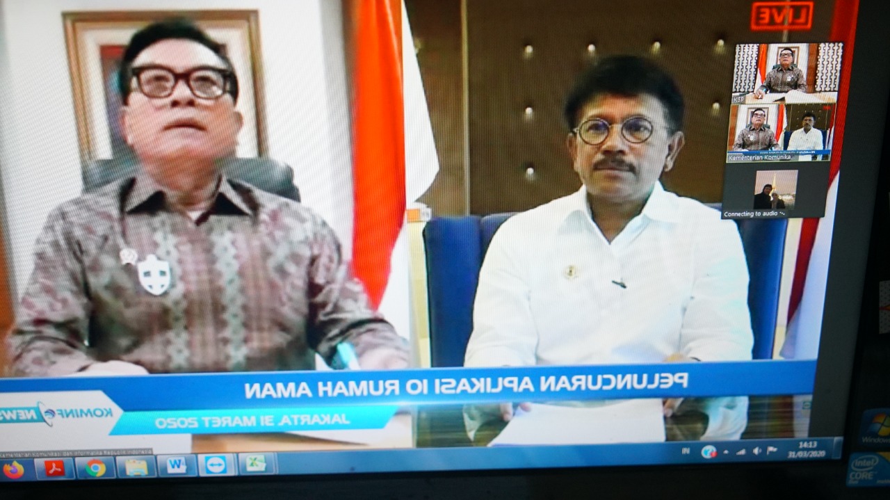 | Kepala Staf Kepresidenan Dr. Moeldoko lakukan teleconference dengan Menteri Komunikasi dan Informatika Johnny G Plate saat meluncurkan Aplikasi 10 Rumah Aman/KSP |