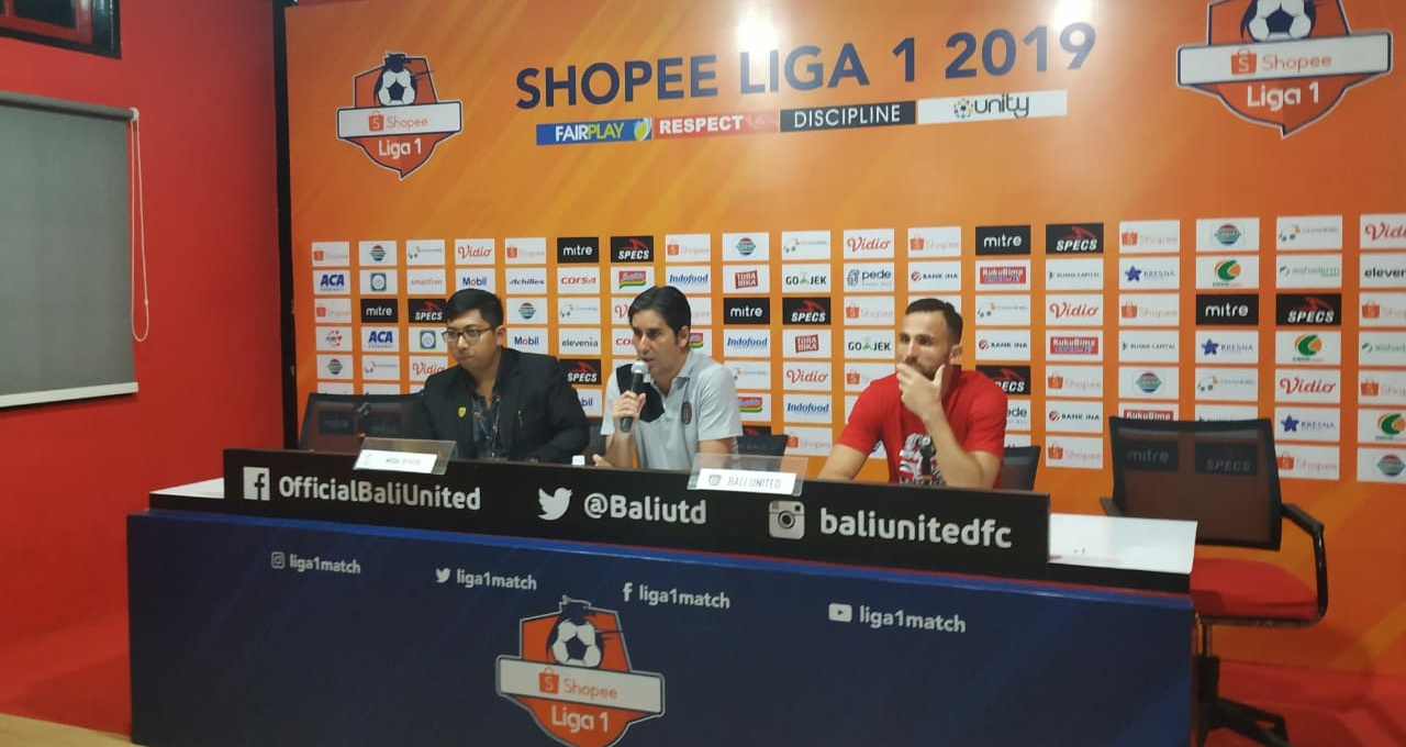 | Pelatih Bali United Coach Teco memberikan keterangan pers usai laga kontra Persebaya |