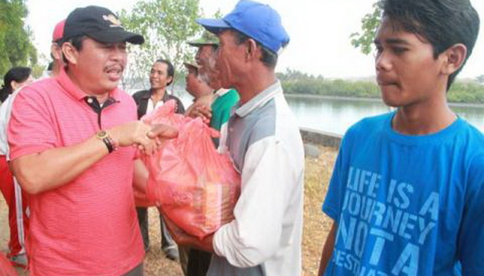 Aksi bagi-bagi sembako kepada warga miskin dilakukan I Putu Artha dalam