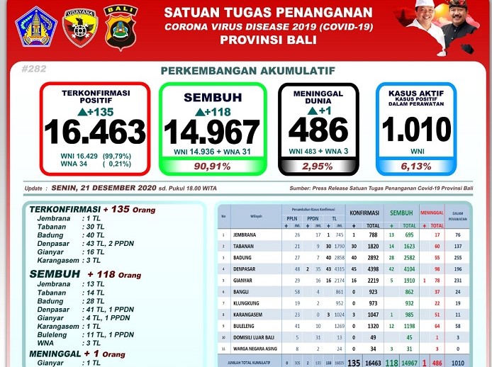 Denpasar – Provinsi Bali mencatat pertambahan kasus terkonfirmasi