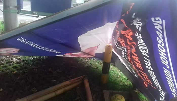 Baliho dukungan Rai Mantra sebagai Cagub Bali yang dirusak orang tak dikenal |