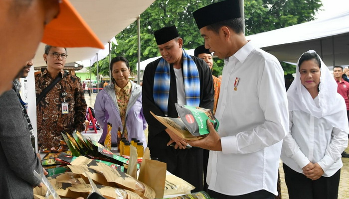 | Presiden Jokowi meninjau peserta Program Mekaar dari PT Permodalan Nasional Madani (PNM)/biro pers setpres |