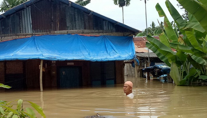 SUMATRA UTARA – Tiga wilayah di Provinsi Sumatra Utara terus diguyur hujan dengan intensitas tinggi menyebabkan sungai meluap dan menimbulkan bencana banjir merendam ribuan rumah.