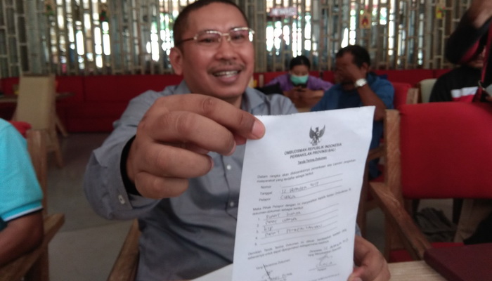 Kuasa hukum PT Hardys Group Cuaca Teger menunjukkan surat pelaporan ke Ombudsman Bali |