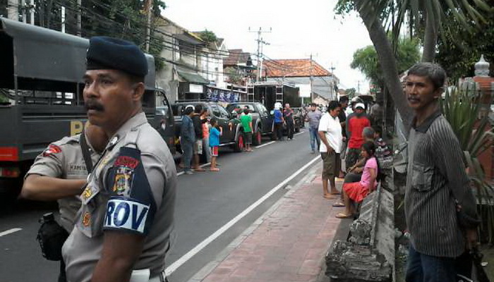 Kerobokan mencekam sehingga petugas Dalmas Polresta Denpasar dikerahkan