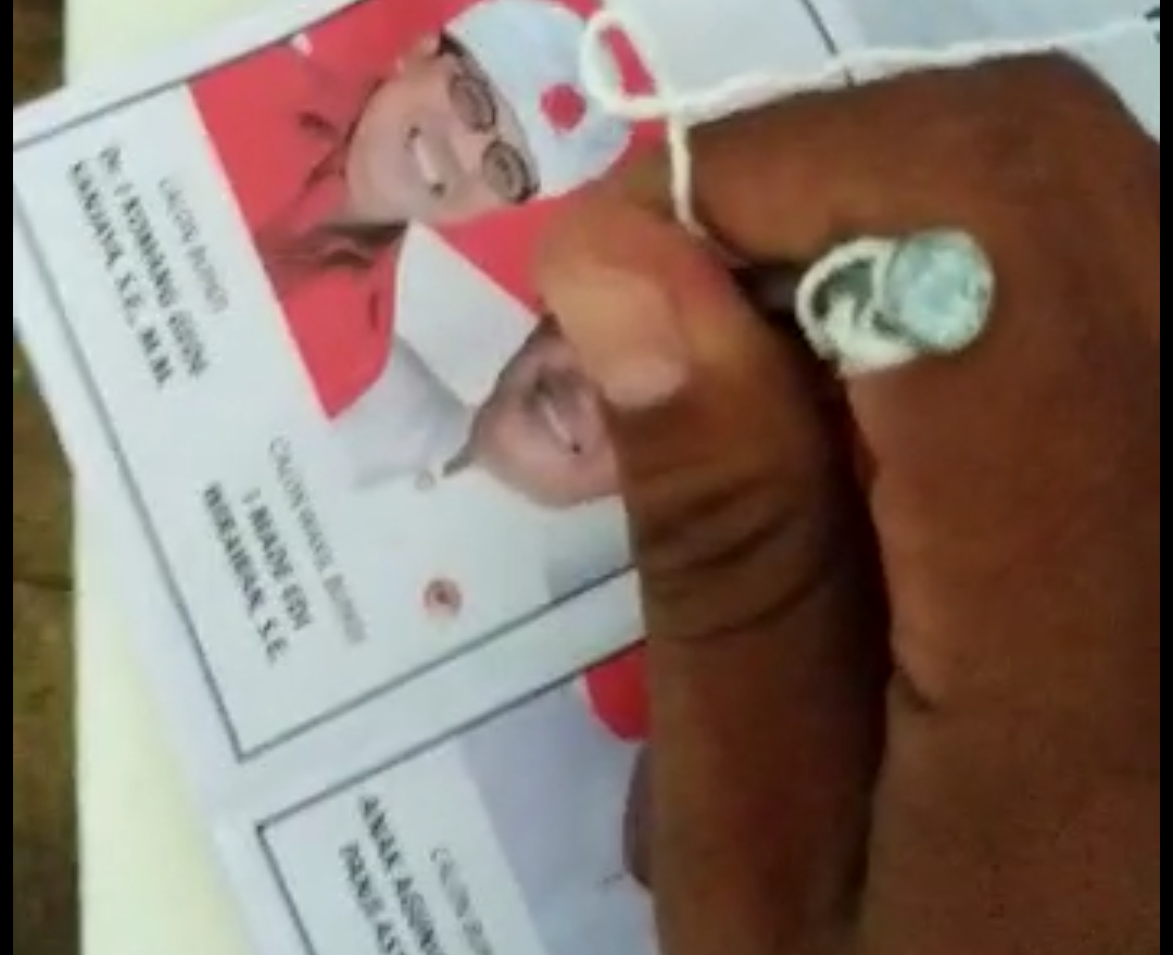 viral itu, tampak seseorang tengah mencoblos sebanyak lima surat suara di