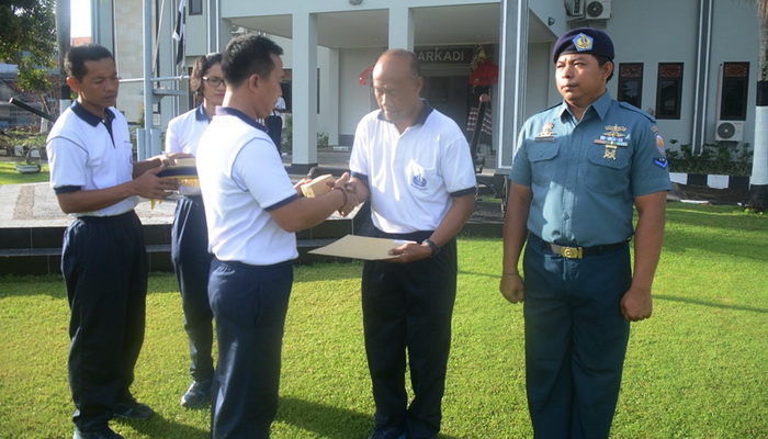 DENPASAR – Komandan Pangkalan TNI AL (Danlanal) Denpasar Kolonel Laut (P) GB. Oka memberikan reward/penghargaan kepada prajurit yang berprestasi, pada apel pagi dilapangan Mako Lanal Denpasar.