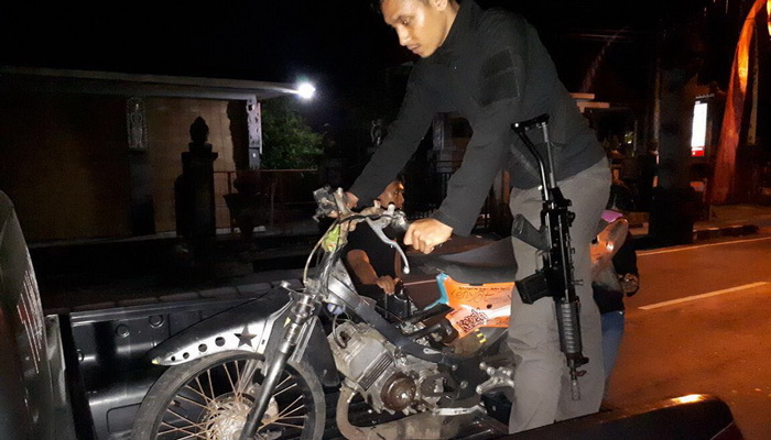 Petugas juga mengamankan satu unit sepeda motor Suzuki yang sudah dimodifikasi. Selanjutnya kendaraan itu dinaikan ke mobil operasional Team Sabata untuk diangkut dan dibawa ke Kantor Polisi.