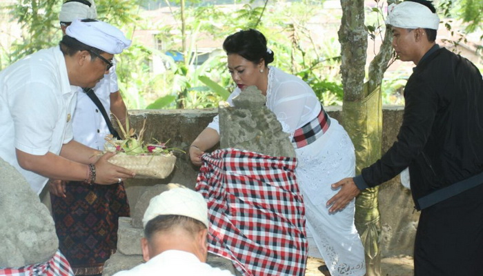 Selain melakukan persembahyangan serta menyerahkan Wastra dan Polis Asuransi kepada pemangku saat di Petilasan Kyayi Agek Pemacekan, Karanganyar. Bupati Eka beserta rombongan juga “Ngewastra” (memasang wastra) di beberapa arca dan Candi di Pura yang dikunjungi.