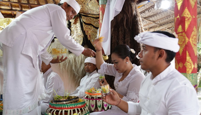 Bupati Peraih Harmony Award 2017 ini beserta seluruh undangan melakukan persembahyangan bersama sembah bhakti guna kelancaran dari Karya. (gus)