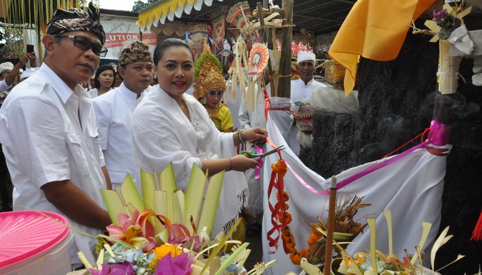 Wiryastuti.meresmikan Pelinggih Hyang Catur Bhuana yang dirancang sebagai ikon atau penanda