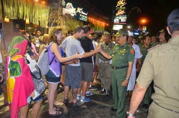 Tak terkecuali dengan Bupati Badung, A.A. Gde Agung bersama rombongan harus rela berjalan kaki layaknya wisatawan lainnya, lantaran jalan-jalan utama seperti Legian hingga Pantai Kuta, disesaki ratusan ribu wisatawan dan warga lainnya.