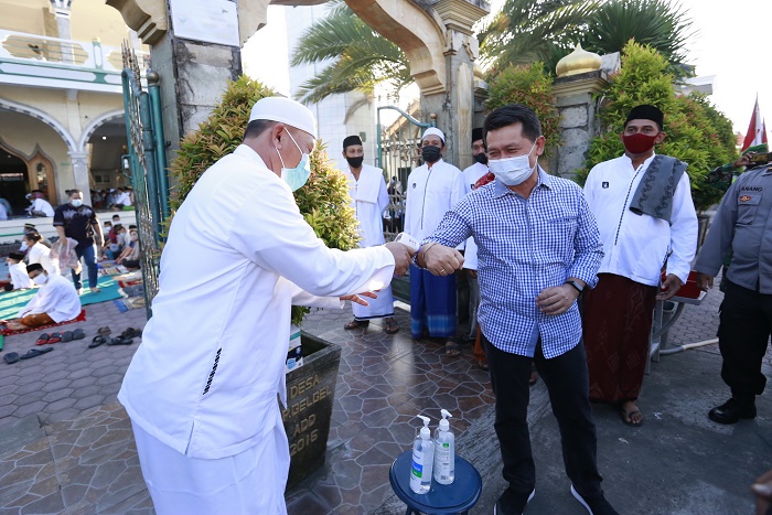 Bupati Klungkung, I Nyoman Suwirta saat memantau pelaksanaan Salat Idul Fitri 1442 Hijriyah di sejumlah masjid/Dok. Humas Pemkab Klungkung |