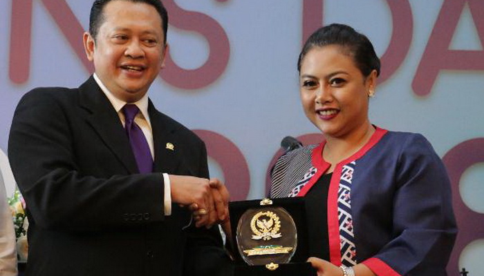 Penghargaan tahunan dari DPR RI untuk memperingati hari wanita dunia ini, diserahkan langsung oleh Ketua DPR RI Bambang Soesatyo, di Gedung Nusantara DPR-RI, Jakarta, Rabu (14/3/208).