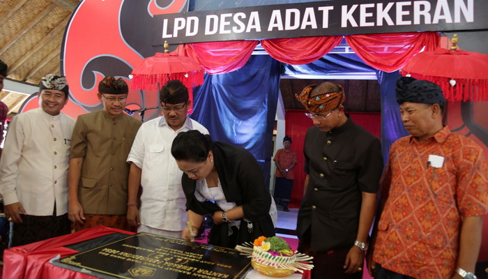 Bupati Tabanan Ni Putu Eka Wiryastuti tandatangani prasasti peresmian LPD DesaAdat Kekeran, Desa Selanbawak, Marga |