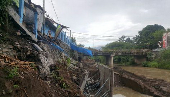“Kalau hanya hujan tidak mungkin jebol, penyebab utamanya karena ada pengerjaan proyek joging trak di bawahnya. Tanah dibawah dikeruk dengan alat berat sehingga pondasi tergantung dan jebol,” ujar Mukminun.