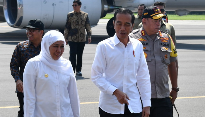 | Gubernur Jawa Timur Khofifah Indar Parawansa menyambut Pressiden Joko Widodo |