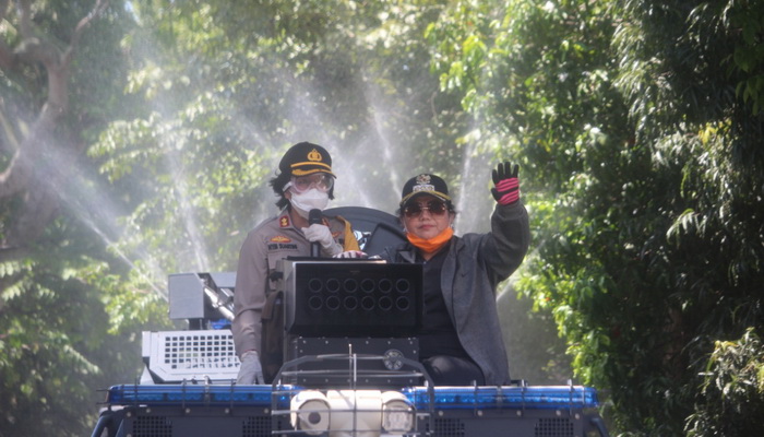 Penyemprotan itu menindaklanjuti instruksi Kapolri Jenderal Polisi Idham Azis di seluruh Tanah Air. Aksi ini untuk menyelamatkan masyarakat terhadap “paparan” Virus Corona (Covid-19).