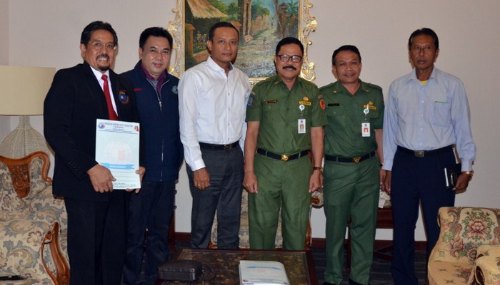 Direktur Utama Pelindo Marine Service Ali Sodikin selaku panitia Asia Pacific Maritime Pilot Forum saat beraudensi dengan Sekretaris Daerah Provinsi Bali Cokorda Ngurah Pemayun di Denpasar, Senin (21/8/2017).