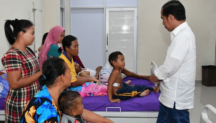 Tigapuluh menit berada di rumah sakit, Kepala Negara menjenguk dan sempat berdialog dengan para korban yang sedang dirawat di RSUD Dr. H. Bob Bazar SKM, Kabupaten Lampung Selatan.