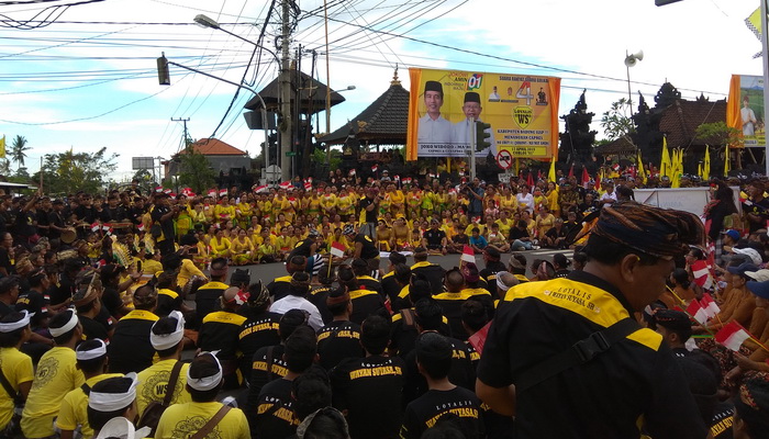 Badung – Ribuan warga Desa Penarungan Kecamatan Mengwi Badung menghadiri peresmian baliho dukungan bagi pasangan Calon Presiden Jokowi Widodo- KH Ma’arif Amin. Selain itu, juga dipasang baliho dukungan bagi calon anggota DPRD Badung nomor urut 1, Dapil Mengwi, I Wayan Suyasa (WS) di perempatan jalan Desa Penarungan.