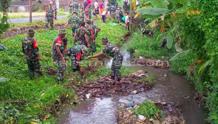 Tejunnya TNI ke teritorial lantaran irigasi yang ada di subak Kediri dan subak Nyitdah selain kotor juga tersumbat sampah.