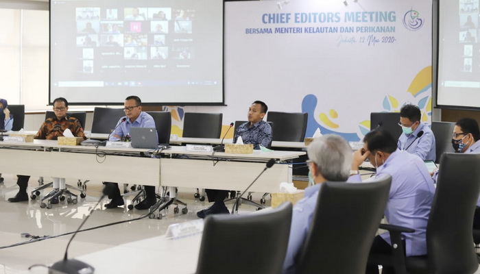 Menteri Kelautan dan Perikanan Edhy Prabowo melakukan pertemuan virtual dengan 28 pemimpin redaksi media cetak, online dan juga elektronik, Selasa (12/5/2020). Dalam pertemuan tersebut membahas sejumlah isu-isu hangat seputar kelautan dan perikanan.