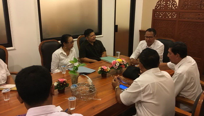 | Pjs Bupati Gianyar Wisnu Wijaya menerima Tim Advokasi Pengendalian Rokok Bali di kantornya |