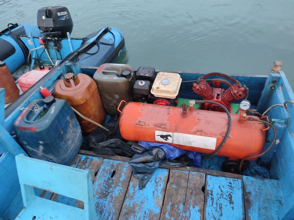 | KKP berhasil menangkap pelaku pengebom ikan dan menyita barang bukti di perairan Selayar./Dok.Humas KKP |