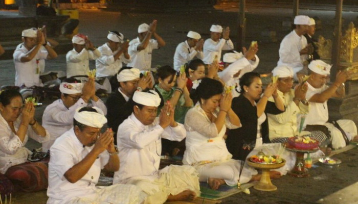 Ditemani Bupati Karangasem I.G.A. Sumantri. Enam Tempat suci dituju secara berurutan meliputi, pertama ke Pura Dasar Buana Gelgel dan Pura Dadia Pasek Pegatepandi Kabupaten Klungkung, juga Pura Basukian, Pura Pedharman Pasek, dan terakhir di Pura Penataran Agung Besakih, Kabupaten Karangasem.