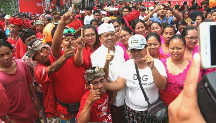 BULELENG– Calon Gubernur Bali Nomor Urut 1, Wayan Koster, menggelar kampanye di Kabupaten Buleleng, Bali, Kamis (3/5/2018). Salah satunya digelar di Lapangan Desa Pakraman Sudaji, Desa Pakraman Sudaji, Kecamatan Sawan, Buleleng.