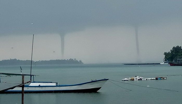 | Fenomena langka tiga puting beliung muncul bersamaan di Kepulauan Seribu/foto:bnpb |