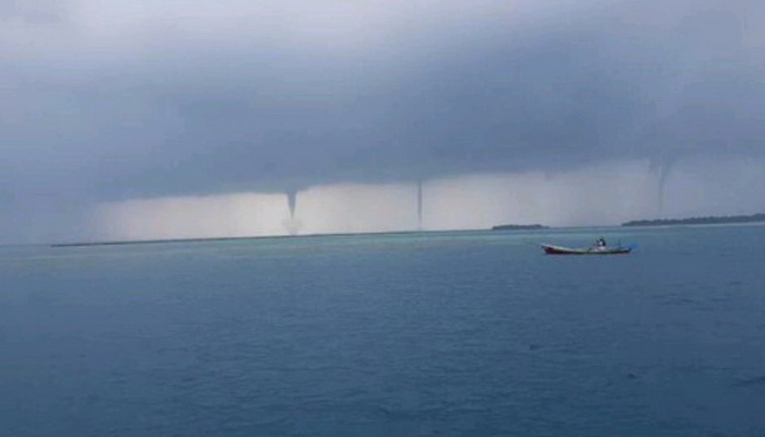| Fenomena langka tiga puting beliung muncul bersamaan di Kepulauan Seribu/foto:bnpb |