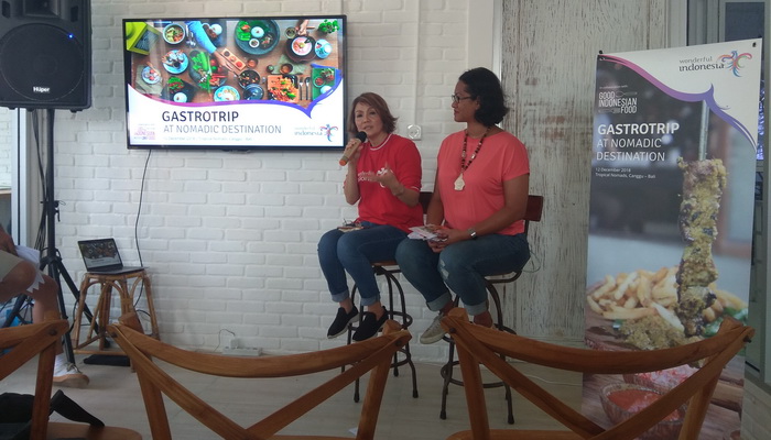 Bincang media bersama Ketua Tim Akselerasi Pembangan untuk Tempat Wisata Kuliner dan Belanja Kemenpar Vita Datau dan Direktur Utama Makanan Indonesia yang Baik Astrid Maharani Prajogo |