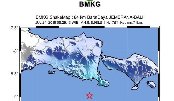 Berdasar rilis BMKG, gempa tektonik terjadi pukul 09.29.13 WITA, Rabu (24/7/2019). Hasil analisa BMKG menunjukkan, gempabumi ini berkekuatan M=4,9, dimutakhirkan menjadi M=4,6. Episenter terletak pada koordinat 8,98 LS dan 114,17 BT.