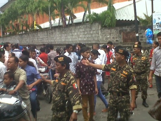 Mereka sibuk mengawasi pergerakan ribuan umat yang keluar masuk gereja dan membantu mengarahkan dan mengeluarkan kendaraan umat dari tempat parkir.