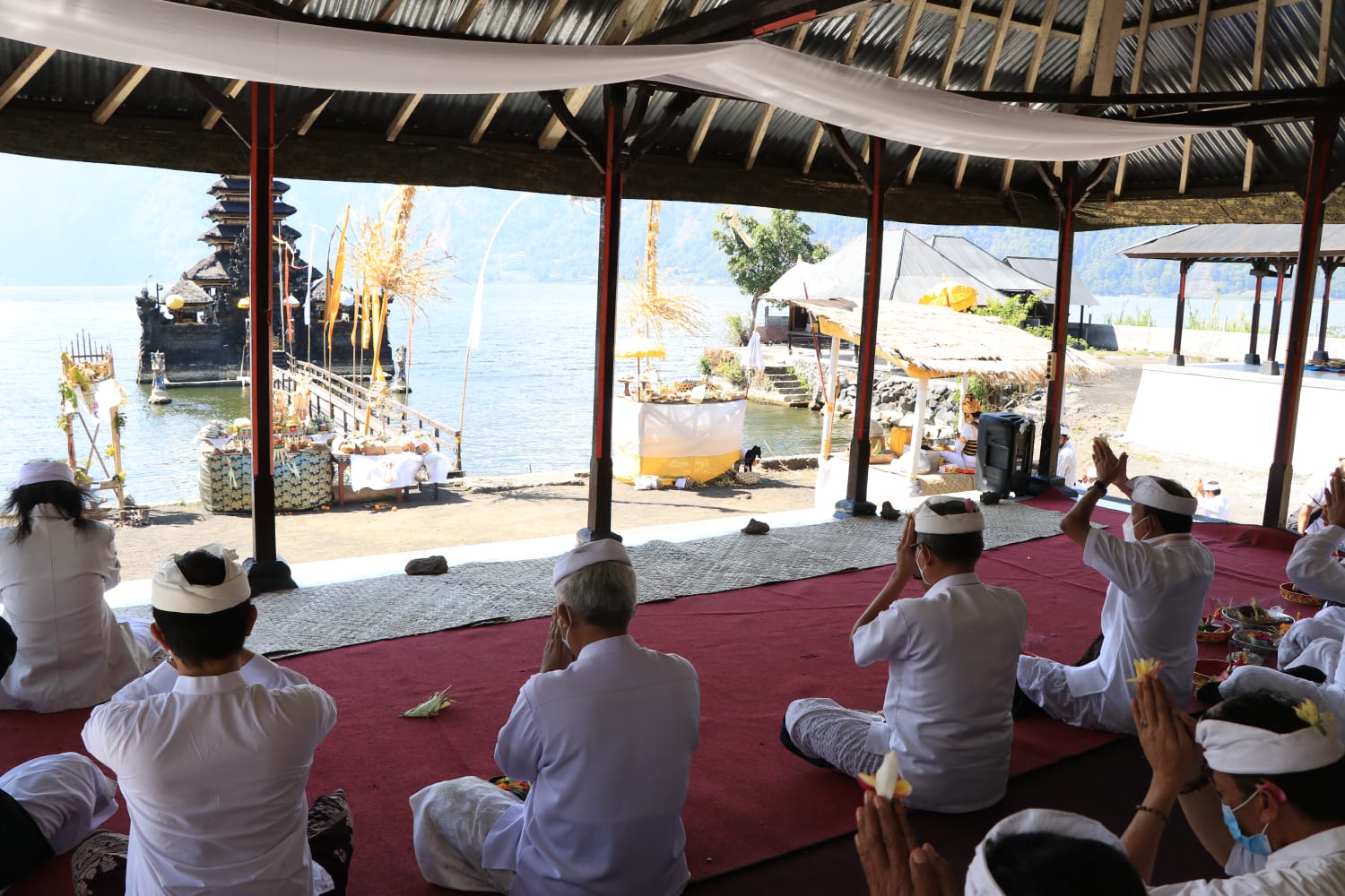 Bangli – Gubernur Bali, Wayan Koster melaksanakan Upacara Aci Pakelem Hulu-Teben di Panca Sagara secara serentak pada hari Sabtu bertepatan Purwani Tilem Bhadrawada/Sasih Karo, dengan mematuhi Protokol Kesehatan secara ketat dan penuh disiplin,Sabtu, (7/8/2021).