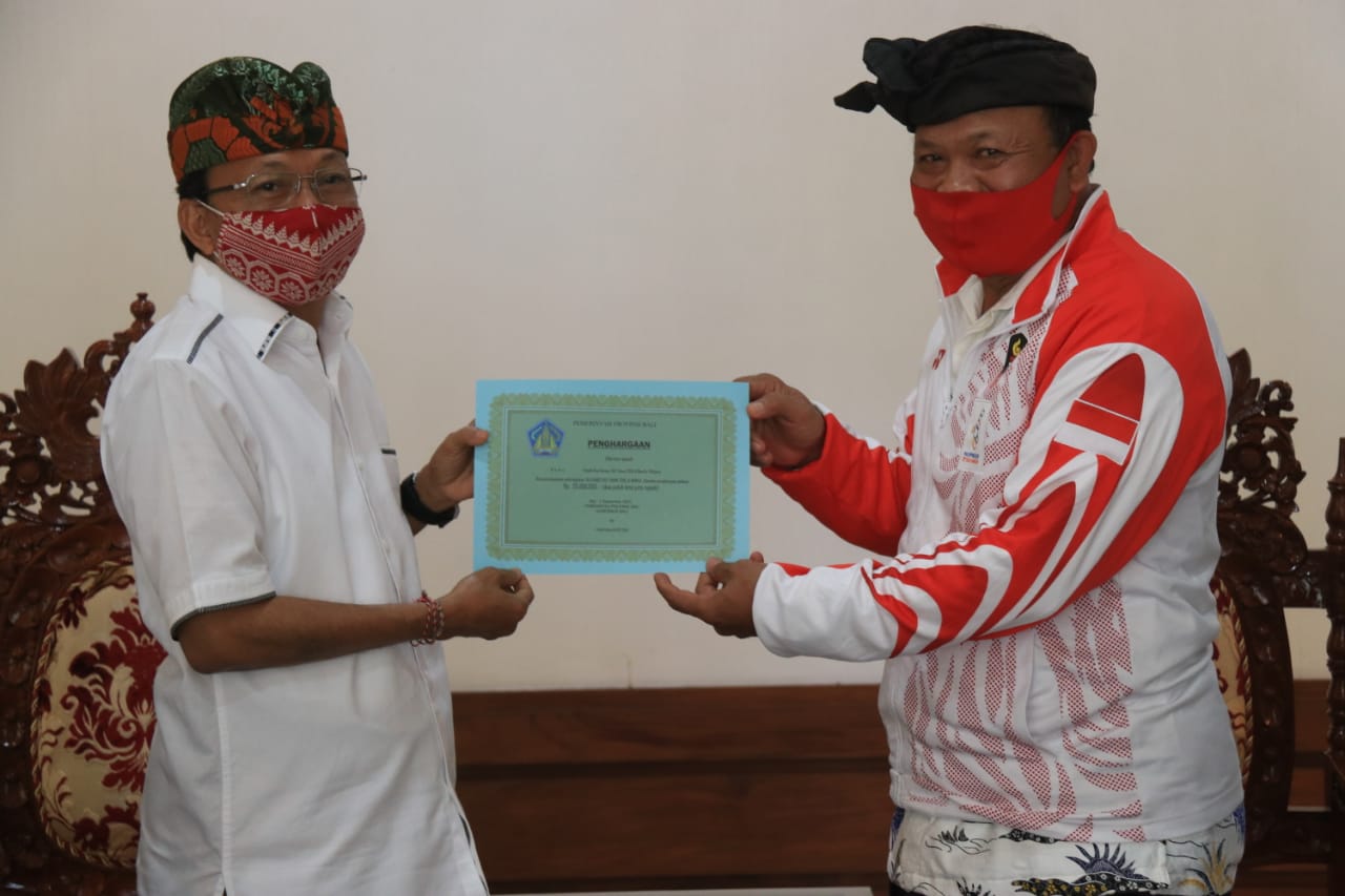 | Gubernur Koster akan mampu makin memotivasi mereka dan atlet lainnya untuk berprestasi dan mengharumkan nama Bali dan Indonesia di kancah internasional. /ist |